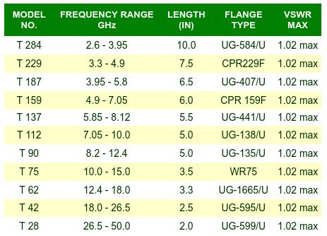 CMC offers terminations in waveguide sizes from WR650 to WR28. Power handling is available from low power lab levels to fan cooled multi-kilowatt applications. Terminations are manufactured to your exact requirements.